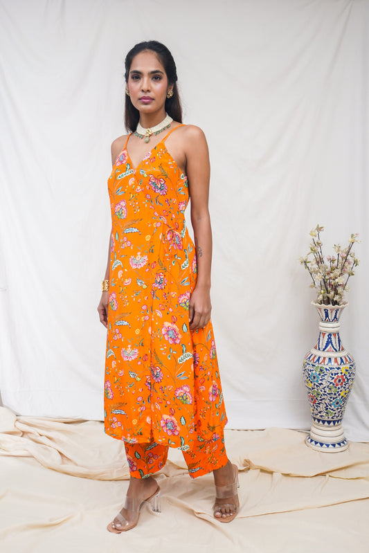 Orange strappy wrap kurta set